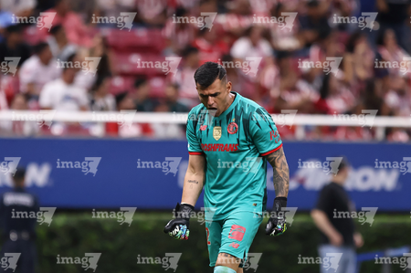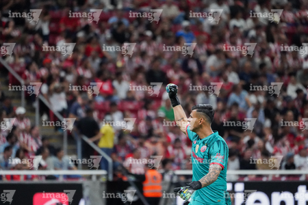 Zapopan, Jalisco, 20 de septiembre de 2025. Raúl Rangel, durante el partido correspondiente a la jornada 9 del torneo Apertura 2025 de la Liga BBVA MX, entre las Chivas Rayadas del Guadalajara y los Diablos Rojos del Toluca, realizado en el estadio Akron. Foto: Imago7/ Hugo Ramírez