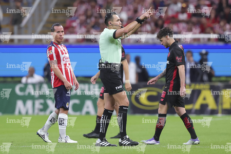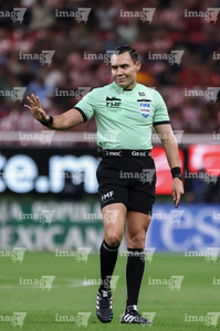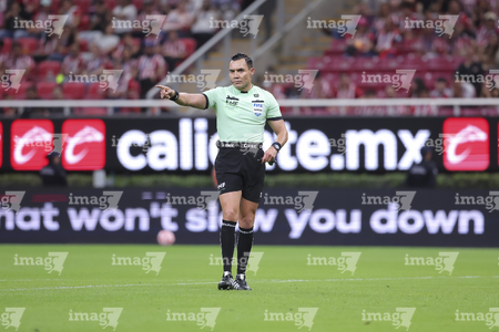 Zapopan, Jalisco, 20 de septiembre de 2025. Marco Antonio Ortiz, árbitro central, durante el partido correspondiente a la jornada 9 del torneo Apertura 2025 de la Liga BBVA MX, entre las Chivas Rayadas del Guadalajara y los Diablos Rojos del Toluca, realizado en el estadio Akron. Foto: Imago7/Cristian Hernandez