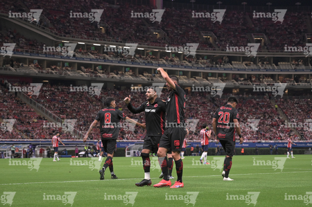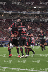Zapopan, Jalisco, 20 de septiembre de 2025. Luis García, Federico Pereira y Bruno Mendez en festejo, durante el partido correspondiente a la jornada 9 del torneo Apertura 2025 de la Liga BBVA MX, entre las Chivas Rayadas del Guadalajara y los Diablos Rojos del Toluca, realizado en el estadio Akron. Foto: Imago7/Cristian Hernandez