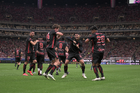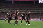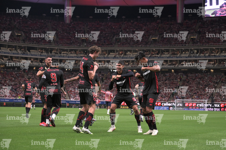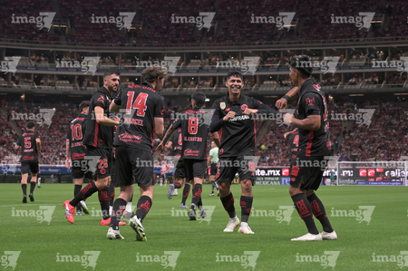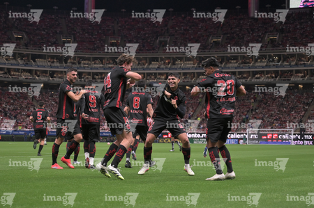 Zapopan, Jalisco, 20 de septiembre de 2025. Jugadores del Toluca en festejo de gol, durante el partido correspondiente a la jornada 9 del torneo Apertura 2025 de la Liga BBVA MX, entre las Chivas Rayadas del Guadalajara y los Diablos Rojos del Toluca, realizado en el estadio Akron. Foto: Imago7/ Rafael Vadillo