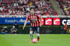 Zapopan, Jalisco, 20 de septiembre de 2025. Alexis Vega, durante el partido correspondiente a la jornada 9 del torneo Apertura 2025 de la Liga BBVA MX, entre las Chivas Rayadas del Guadalajara y los Diablos Rojos del Toluca, realizado en el estadio Akron. Foto: Imago7/Cristian Hernandez