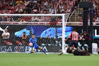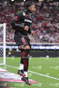Zapopan, Jalisco, 20 de septiembre de 2025. Alexis Vega anota gol, durante el partido correspondiente a la jornada 9 del torneo Apertura 2025 de la Liga BBVA MX, entre las Chivas Rayadas del Guadalajara y los Diablos Rojos del Toluca, realizado en el estadio Akron. Foto: Imago7/ Rafael Vadillo