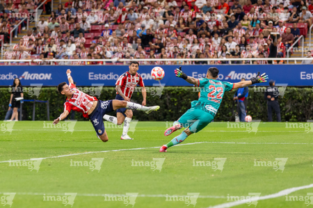 Zapopan, Jalisco, 20 de septiembre de 2025. , durante el partido correspondiente a la jornada 9 del torneo Apertura 2025 de la Liga BBVA MX, entre las Chivas Rayadas del Guadalajara y los Diablos Rojos del Toluca, realizado en el estadio Akron. Foto: Imago7/ Hugo Ramírez