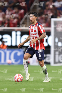 Zapopan, Jalisco, 20 de septiembre de 2025. Omar Govea, durante el partido correspondiente a la jornada 9 del torneo Apertura 2025 de la Liga BBVA MX, entre las Chivas Rayadas del Guadalajara y los Diablos Rojos del Toluca, realizado en el estadio Akron. Foto: Imago7/Cristian Hernandez