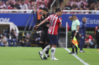 Zapopan, Jalisco, 20 de septiembre de 2025. Paulinho en festejo de gol, durante el partido correspondiente a la jornada 9 del torneo Apertura 2025 de la Liga BBVA MX, entre las Chivas Rayadas del Guadalajara y los Diablos Rojos del Toluca, realizado en el estadio Akron. Foto: Imago7/Cristian Hernandez