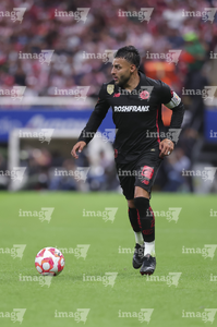 Zapopan, Jalisco, 20 de septiembre de 2025. Bruno Mendez, durante el partido correspondiente a la jornada 9 del torneo Apertura 2025 de la Liga BBVA MX, entre las Chivas Rayadas del Guadalajara y los Diablos Rojos del Toluca, realizado en el estadio Akron. Foto: Imago7/ Rafael Vadillo