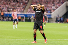 Zapopan, Jalisco, 20 de septiembre de 2025. Paulinho en lamento, durante el partido correspondiente a la jornada 9 del torneo Apertura 2025 de la Liga BBVA MX, entre las Chivas Rayadas del Guadalajara y los Diablos Rojos del Toluca, realizado en el estadio Akron. Foto: Imago7/Cristian Hernandez