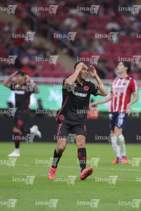 Zapopan, Jalisco, 20 de septiembre de 2025. Santiago Sandoval en lamento, durante el partido correspondiente a la jornada 9 del torneo Apertura 2025 de la Liga BBVA MX, entre las Chivas Rayadas del Guadalajara y los Diablos Rojos del Toluca, realizado en el estadio Akron. Foto: Imago7/ Hugo Ramírez