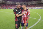 Zapopan, Jalisco, 20 de septiembre de 2025. Luis García en festejo, durante el partido correspondiente a la jornada 9 del torneo Apertura 2025 de la Liga BBVA MX, entre las Chivas Rayadas del Guadalajara y los Diablos Rojos del Toluca, realizado en el estadio Akron. Foto: Imago7/ Hugo Ramírez