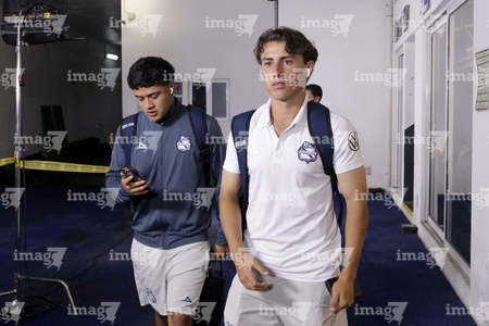 Puebla, Puebla, 23 de septiembre de 2025. Alán Bautista y Emiliano Gómez, durante el partido correspondiente a la jornada 10 del torneo Apertura 2025 de la Liga BBVA MX, entre el Club Puebla y los Tuzos del Pachuca, realizado en el estadio Cuauhtémoc. Foto: Imago7/Mireya Novo