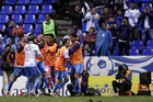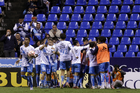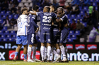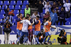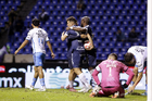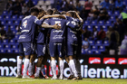 Puebla, Puebla, 23 de septiembre de 2025. Jugadores de Pachuca en festejo de gol, durante el partido correspondiente a la jornada 10 del torneo Apertura 2025 de la Liga BBVA MX, entre el Club Puebla y los Tuzos del Pachuca, realizado en el estadio Cuauhtémoc. Foto: Imago7/Mireya Novo