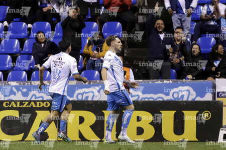 Puebla, Puebla, 23 de septiembre de 2025. Emiliano Gómez en festejo de gol, durante el partido correspondiente a la jornada 10 del torneo Apertura 2025 de la Liga BBVA MX, entre el Club Puebla y los Tuzos del Pachuca, realizado en el estadio Cuauhtémoc. Foto: Imago7/Mireya Novo