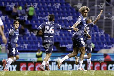 Puebla, Puebla, 23 de septiembre de 2025. Alán Bautista en festejo de gol, durante el partido correspondiente a la jornada 10 del torneo Apertura 2025 de la Liga BBVA MX, entre el Club Puebla y los Tuzos del Pachuca, realizado en el estadio Cuauhtémoc. Foto: Imago7/Mireya Novo