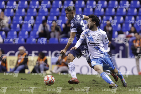 Puebla, Puebla, 23 de septiembre de 2025. Luis Quiñones (I), durante el partido correspondiente a la jornada 10 del torneo Apertura 2025 de la Liga BBVA MX, entre el Club Puebla y los Tuzos del Pachuca, realizado en el estadio Cuauhtémoc. Foto: Imago7/Mireya Novo