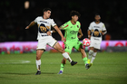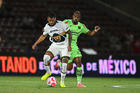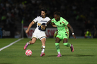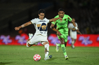 Ciudad Juárez, Chihuahua, 23 de septiembre de 2025. Rodolfo Pizarro y Santiago Trigos, durante el partido correspondiente a la jornada 10 del torneo Apertura 2025 de la Liga BBVA MX, entre los Bravos de FC Juárez y los Pumas de la UNAM, realizado en realizado en el estadio Olímpico Benito Juárez. Foto: Imago7/ Alejandro Rodríguez