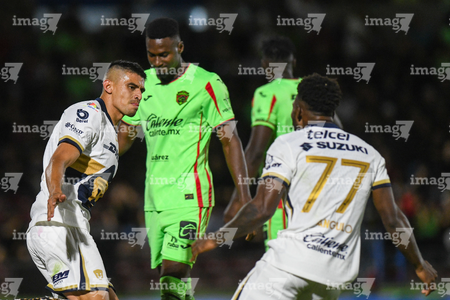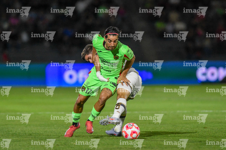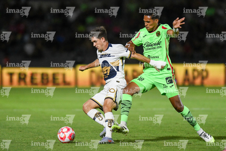 Ciudad Juárez, Chihuahua, 23 de septiembre de 2025. Alan Medina y Homer Martínez, durante el partido correspondiente a la jornada 10 del torneo Apertura 2025 de la Liga BBVA MX, entre los Bravos de FC Juárez y los Pumas de la UNAM, realizado en realizado en el estadio Olímpico Benito Juárez. Foto: Imago7/ Alejandro Rodríguez