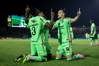 Ciudad Juárez, Chihuahua, 23 de septiembre de 2025. Moises Castillo, Guilherme Castilho y Oscar Estupiñan en festejo, durante el partido correspondiente a la jornada 10 del torneo Apertura 2025 de la Liga BBVA MX, entre los Bravos de FC Juárez y los Pumas de la UNAM, realizado en realizado en el estadio Olímpico Benito Juárez. Foto: Imago7/ Rodolfo Serrano
