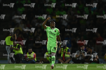 Ciudad Juárez, Chihuahua, 23 de septiembre de 2025. Oscar Estupiñan en festejo de gol, durante el partido correspondiente a la jornada 10 del torneo Apertura 2025 de la Liga BBVA MX, entre los Bravos de FC Juárez y los Pumas de la UNAM, realizado en realizado en el estadio Olímpico Benito Juárez. Foto: Imago7/ Rodolfo Serrano