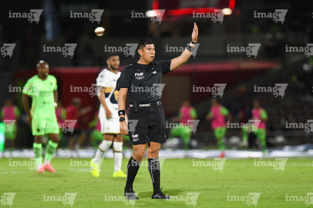 Ciudad Juárez, Chihuahua, 23 de septiembre de 2025. Salvador Pérez Villalobos, árbitro central, durante el partido correspondiente a la jornada 10 del torneo Apertura 2025 de la Liga BBVA MX, entre los Bravos de FC Juárez y los Pumas de la UNAM, realizado en realizado en el estadio Olímpico Benito Juárez. Foto: Imago7/ José Zamora