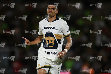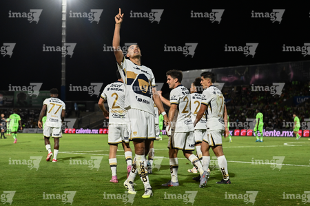Ciudad Juárez, Chihuahua, 23 de septiembre de 2025. Guillermo Martínez en festejo de gol, durante el partido correspondiente a la jornada 10 del torneo Apertura 2025 de la Liga BBVA MX, entre los Bravos de FC Juárez y los Pumas de la UNAM, realizado en realizado en el estadio Olímpico Benito Juárez. Foto: Imago7/ José Zamora