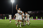 Ciudad Juárez, Chihuahua, 23 de septiembre de 2025. Sebastián Jurado en festejo, durante el partido correspondiente a la jornada 10 del torneo Apertura 2025 de la Liga BBVA MX, entre los Bravos de FC Juárez y los Pumas de la UNAM, realizado en realizado en el estadio Olímpico Benito Juárez. Foto: Imago7/ Alejandro Rodríguez