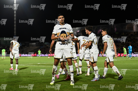 Ciudad Juárez, Chihuahua, 23 de septiembre de 2025. Guillermo Martínez y Alvaro Angulo en festejo de gol, durante el partido correspondiente a la jornada 10 del torneo Apertura 2025 de la Liga BBVA MX, entre los Bravos de FC Juárez y los Pumas de la UNAM, realizado en realizado en el estadio Olímpico Benito Juárez. Foto: Imago7/ Alejandro Rodríguez