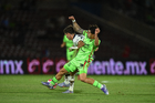 Ciudad Juárez, Chihuahua, 23 de septiembre de 2025. Santiago Trigos y Homer Martínez, durante el partido correspondiente a la jornada 10 del torneo Apertura 2025 de la Liga BBVA MX, entre los Bravos de FC Juárez y los Pumas de la UNAM, realizado en realizado en el estadio Olímpico Benito Juárez. Foto: Imago7/ Alejandro Rodríguez