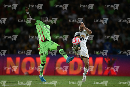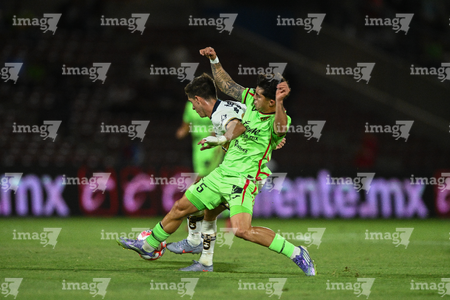 Ciudad Juárez, Chihuahua, 23 de septiembre de 2025. Rodrigo López y Denzell García, durante el partido correspondiente a la jornada 10 del torneo Apertura 2025 de la Liga BBVA MX, entre los Bravos de FC Juárez y los Pumas de la UNAM, realizado en realizado en el estadio Olímpico Benito Juárez. Foto: Imago7/ José Zamora