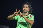 Ciudad Juárez, Chihuahua, 23 de septiembre de 2025. Rodolfo Pizarro en festejo de gol, durante el partido correspondiente a la jornada 10 del torneo Apertura 2025 de la Liga BBVA MX, entre los Bravos de FC Juárez y los Pumas de la UNAM, realizado en realizado en el estadio Olímpico Benito Juárez. Foto: Imago7/ Rodolfo Serrano
