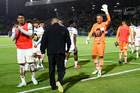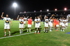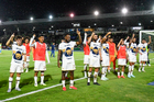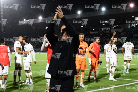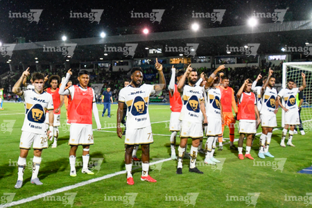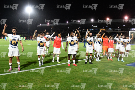 Ciudad Juárez, Chihuahua, 23 de septiembre de 2025. Jugadores de Pumas entonando el Goya, durante el partido correspondiente a la jornada 10 del torneo Apertura 2025 de la Liga BBVA MX, entre los Bravos de FC Juárez y los Pumas de la UNAM, realizado en realizado en el estadio Olímpico Benito Juárez. Foto: Imago7/ Alejandro Rodríguez