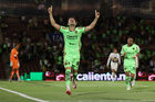 Ciudad Juárez, Chihuahua, 23 de septiembre de 2025. Guillermo Martínez en festejo de gol, durante el partido correspondiente a la jornada 10 del torneo Apertura 2025 de la Liga BBVA MX, entre los Bravos de FC Juárez y los Pumas de la UNAM, realizado en realizado en el estadio Olímpico Benito Juárez. Foto: Imago7/ Alejandro Rodríguez