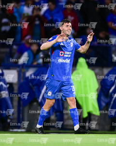 Ciudad de México, 24 de septiembre de 2025. Gabriel Fernández en festejo de gol, durante el partido correspondiente a la jornada 10 del torneo Apertura 2025 de la Liga BBVA MX, entre la Máquina Celeste del Cruz Azul y los Gallos Blancos del Querétaro, realizado en el estadio Olímpico Universitario. Foto: Imago7/ Alexis Chavez
