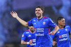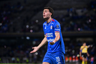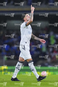 Ciudad de México, 24 de septiembre de 2025. José Paradela en festejo de gol, durante el partido correspondiente a la jornada 10 del torneo Apertura 2025 de la Liga BBVA MX, entre la Máquina Celeste del Cruz Azul y los Gallos Blancos del Querétaro, realizado en el estadio Olímpico Universitario. Foto: Imago7/ Manlio Contreras