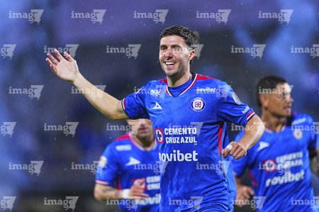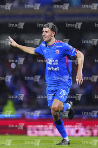Ciudad de México, 24 de septiembre de 2025. José Paradela en festejo de gol, durante el partido correspondiente a la jornada 10 del torneo Apertura 2025 de la Liga BBVA MX, entre la Máquina Celeste del Cruz Azul y los Gallos Blancos del Querétaro, realizado en el estadio Olímpico Universitario. Foto: Imago7/ Alexis Chavez