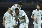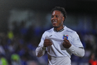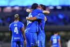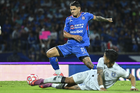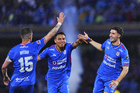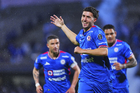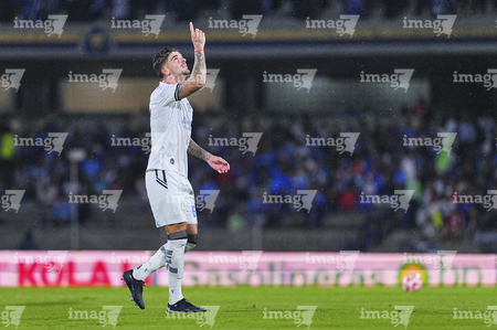 Ciudad de México, 24 de septiembre de 2025. Santiago Homenchenko en festejo de gol, durante el partido correspondiente a la jornada 10 del torneo Apertura 2025 de la Liga BBVA MX, entre la Máquina Celeste del Cruz Azul y los Gallos Blancos del Querétaro, realizado en el estadio Olímpico Universitario. Foto: Imago7/ Manlio Contreras