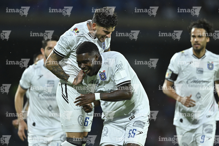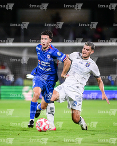 Ciudad de México, 24 de septiembre de 2025. Willer Ditta y Mateo Coronel, durante el partido correspondiente a la jornada 10 del torneo Apertura 2025 de la Liga BBVA MX, entre la Máquina Celeste del Cruz Azul y los Gallos Blancos del Querétaro, realizado en el estadio Olímpico Universitario. Foto: Imago7/ Alexis Chavez
