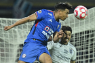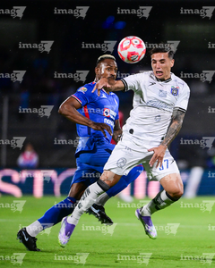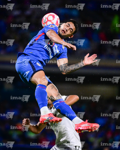 Ciudad de México, 24 de septiembre de 2025. Gabriel Fernández "Toro" y , durante el partido correspondiente a la jornada 10 del torneo Apertura 2025 de la Liga BBVA MX, entre la Máquina Celeste del Cruz Azul y los Gallos Blancos del Querétaro, realizado en el estadio Olímpico Universitario. Foto: Imago7/ Manlio Contreras