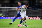 Ciudad de México, 24 de septiembre de 2025. José Paradela y Rodrigo Bogarin, durante el partido correspondiente a la jornada 10 del torneo Apertura 2025 de la Liga BBVA MX, entre la Máquina Celeste del Cruz Azul y los Gallos Blancos del Querétaro, realizado en el estadio Olímpico Universitario. Foto: Imago7/ Alexis Chavez
