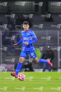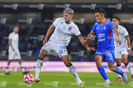 Ciudad de México, 24 de septiembre de 2025. Mateo Coronel, durante el partido correspondiente a la jornada 10 del torneo Apertura 2025 de la Liga BBVA MX, entre la Máquina Celeste del Cruz Azul y los Gallos Blancos del Querétaro, realizado en el estadio Olímpico Universitario. Foto: Imago7/ Alexis Chavez