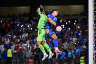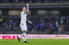 Ciudad de México, 24 de septiembre de 2025. Santiago Homenchenko en festejo de gol, durante el partido correspondiente a la jornada 10 del torneo Apertura 2025 de la Liga BBVA MX, entre la Máquina Celeste del Cruz Azul y los Gallos Blancos del Querétaro, realizado en el estadio Olímpico Universitario. Foto: Imago7/Etzel Espinosa