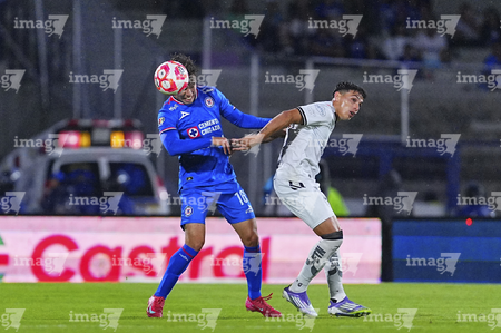 Ciudad de México, 24 de septiembre de 2025. Blu y Atlantis Jr, durante el partido correspondiente a la jornada 10 del torneo Apertura 2025 de la Liga BBVA MX, entre la Máquina Celeste del Cruz Azul y los Gallos Blancos del Querétaro, realizado en el estadio Olímpico Universitario. Foto: Imago7/Etzel Espinosa