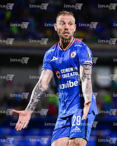 Ciudad de México, 24 de septiembre de 2025. Carlos Rodríguez, durante el partido correspondiente a la jornada 10 del torneo Apertura 2025 de la Liga BBVA MX, entre la Máquina Celeste del Cruz Azul y los Gallos Blancos del Querétaro, realizado en el estadio Olímpico Universitario. Foto: Imago7/ Alexis Chavez
