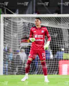 Ciudad de México, 24 de septiembre de 2025. Kevin Mier, durante el partido correspondiente a la jornada 10 del torneo Apertura 2025 de la Liga BBVA MX, entre la Máquina Celeste del Cruz Azul y los Gallos Blancos del Querétaro, realizado en el estadio Olímpico Universitario. Foto: Imago7/ Alexis Chavez