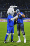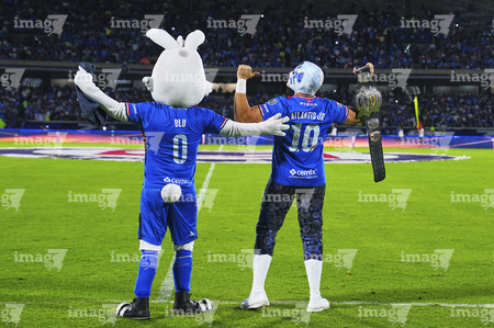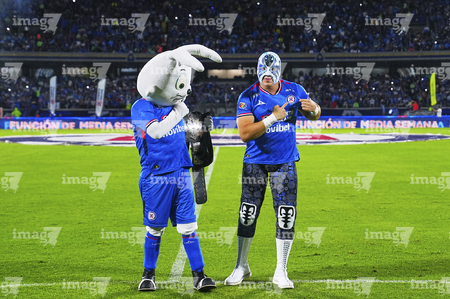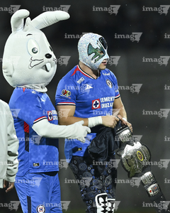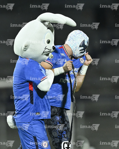 Ciudad de México, 24 de septiembre de 2025. Blu y Atlantis Jr, durante el partido correspondiente a la jornada 10 del torneo Apertura 2025 de la Liga BBVA MX, entre la Máquina Celeste del Cruz Azul y los Gallos Blancos del Querétaro, realizado en el estadio Olímpico Universitario. Foto: Imago7/ Manlio Contreras
