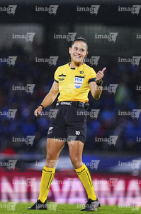 Ciudad de México, 24 de septiembre de 2025. Karen Hernández Andrade, árbitra central, durante el partido correspondiente a la jornada 10 del torneo Apertura 2025 de la Liga BBVA MX, entre la Máquina Celeste del Cruz Azul y los Gallos Blancos del Querétaro, realizado en el estadio Olímpico Universitario. Foto: Imago7/ Manlio Contreras