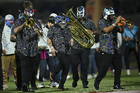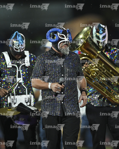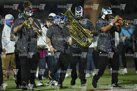 Ciudad de México, 24 de septiembre de 2025. La banda Lucha Kumbia durante el partido correspondiente a la jornada 10 del torneo Apertura 2025 de la Liga BBVA MX, entre la Máquina Celeste del Cruz Azul y los Gallos Blancos del Querétaro, realizado en el estadio Olímpico Universitario. Foto: Imago7/Etzel Espinosa