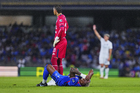 Ciudad de México, 24 de septiembre de 2025. Ángel Sepúlveda en lamento, durante el partido correspondiente a la jornada 10 del torneo Apertura 2025 de la Liga BBVA MX, entre la Máquina Celeste del Cruz Azul y los Gallos Blancos del Querétaro, realizado en el estadio Olímpico Universitario. Foto: Imago7/ Alexis Chavez