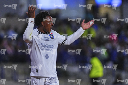 Ciudad de México, 24 de septiembre de 2025. Jhojan Julio Palacios en reclamo, durante el partido correspondiente a la jornada 10 del torneo Apertura 2025 de la Liga BBVA MX, entre la Máquina Celeste del Cruz Azul y los Gallos Blancos del Querétaro, realizado en el estadio Olímpico Universitario. Foto: Imago7/ Manlio Contreras
