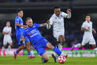 Ciudad de México, 24 de septiembre de 2025. Ángel Sepúlveda y Carlos Villanueva, durante el partido correspondiente a la jornada 10 del torneo Apertura 2025 de la Liga BBVA MX, entre la Máquina Celeste del Cruz Azul y los Gallos Blancos del Querétaro, realizado en el estadio Olímpico Universitario. Foto: Imago7/Etzel Espinosa