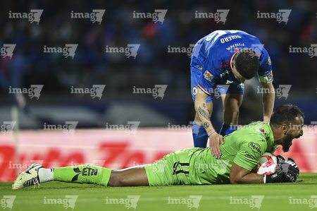 Ciudad de México, 24 de septiembre de 2025. Kevin Mier en lamento, durante el partido correspondiente a la jornada 10 del torneo Apertura 2025 de la Liga BBVA MX, entre la Máquina Celeste del Cruz Azul y los Gallos Blancos del Querétaro, realizado en el estadio Olímpico Universitario. Foto: Imago7/ Alexis Chavez